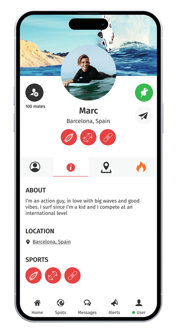 The client needed an App design that was modern and intuitive. Easy to use due to the large number of features they wanted to include in the app but attractive enough to appeal to the extreme sports profile (fresh, modern, disruptive...).